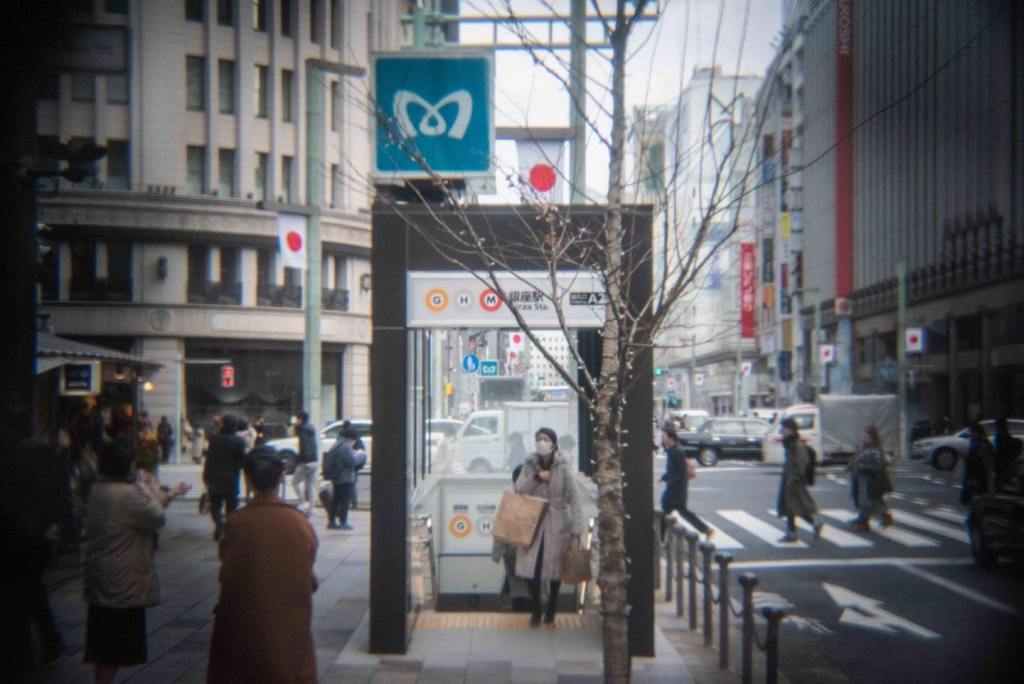 Woman exiting in Ginza, Tokyo.