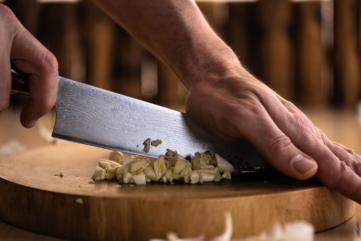 - Heat a wok or deep fry pan, add your oil and gently sauté the garlic and ginger until it’s nicely browned.